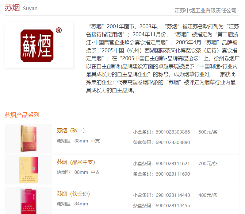 A. 苏烟系列介绍:包括多种产品,如苏烟软金砂、苏烟五星红等。
